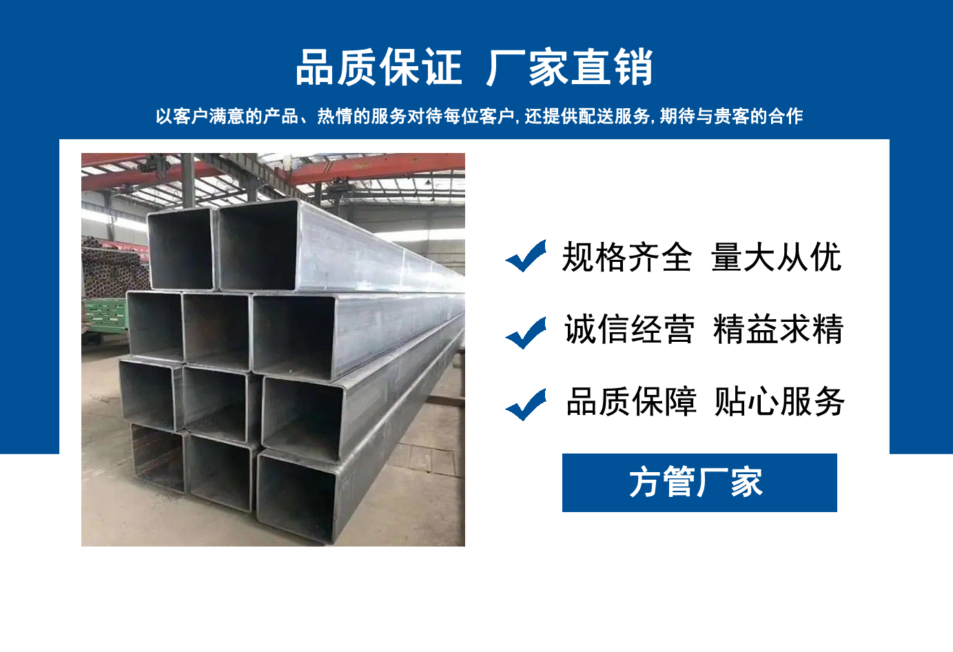 山東方管廠主要生產Q355B方管,Q355C方管,Q355D方管,Q355E方管,低合金方管等,曾多次為客戶解決了各種無縫管疑難問題,經不斷的創新與努力,得到了客戶良好的信譽和稱贊。 公司秉承質量、服務是我們尋求發展的唯一途徑,為客戶提供極具市場競爭力的高品質產品,愿與客戶一起進步、共享成功! 我公司秉承“誠信經營,服務周到”的經營原則,全力以赴,給客戶周到滿意的服務?!罢\信、專業、認真、服務”是我們的宗旨。幾年來我們用專業的技術和周到的服務贏得了廣大客戶和供應商的信賴,與各大企業有著廣泛的合作和聯系,受到了業內好評。我們會以優良的產品、優惠的價格、優先的貨期、優良的服務,珍惜客戶給予我們的每一個機會。...